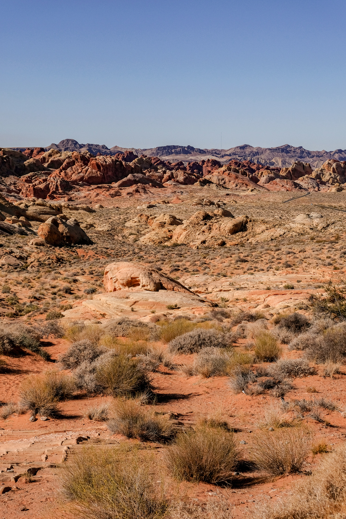 On reprend la voiture, direction le Rainbow Vista pour une petite randonnée d’1.5 km dans le sable ou on arrive à flanc de colline avec une vue panoramique sur la vallée.