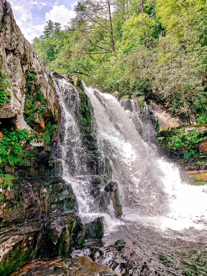 A l’inverse du chemin de la veille, cette randonnée scénique présente peu de dénivelé et nous fait traverser une forêt de pins et de chênes. On suit le ruisseau Abrams dont le cours s’intensifie à mesure que l’on progresse avant d’atteindre le clou du spectacle, la cascade Abram Falls qui mesure plus de 6 mètres. Le bruit de l’eau qui s’écrase sur la roche plus bas est assez assourdissant mais on se rapproche pour quelques photos souvenirs et pour se rafraichir un peu. Certains ont même pris leur maillot de bain et nagent dans cette piscine naturelle. Attention au courant et aux rochers qui peuvent être glissants !
