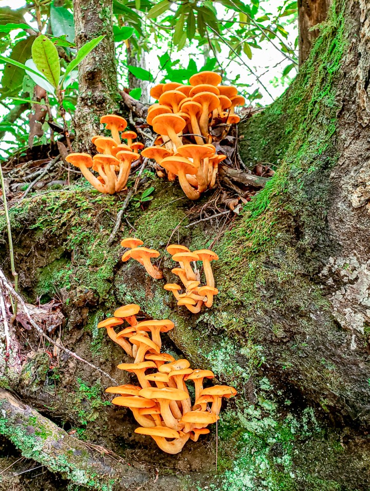 On a fait la version « courte » de la Alum Cave Trail qui fait quand même 8 km aller/retour et qui monte pas mal -dénivelé de 340 mètres. Au cours de cette randonnée, on traverse un petit ruisseau, on découvre des points de vue dégagés et des formes géologiques étonnantes. Tout d’abord le Arch Rock, une formation rocheuse qui avec le temps s’est peu à peu érodée. Le chemin de randonnée passe donc à travers la roche sombre et humide, avec quelques marches carrément formées dans la pierre. Au bout de quelques heures, on atteint avec satisfaction les impressionnantes falaises qui ressemblent plus à des concaves qu’à des caves avec une hauteur de 24 mètres. On s’y repose en mangeant un sandwich avant de commencer la descente. Certains continueront jusqu’au sommet du Mt. Le Conte, compter 8 km de plus.