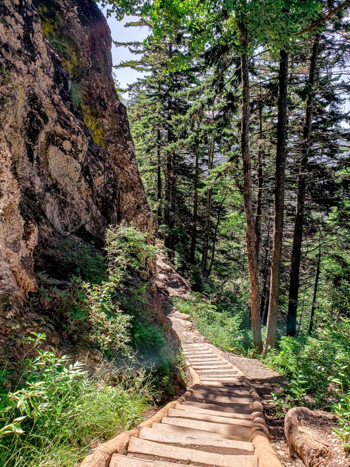 Info pour la Alum Cave Trail : Sur la Newfound Gap Road, un panneau et 2 parkings marquent l’entrée du chemin de randonnée. Compter 4h.
